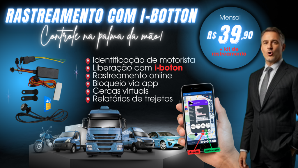 Além disso, cada iButton identifica exatamente quem está dirigindo, registrando horários e uso do veículo. Isso reduz furtos, uso indevido e melhora o controle da frota, trazendo mais segurança e gestão eficiente em um único sistema.