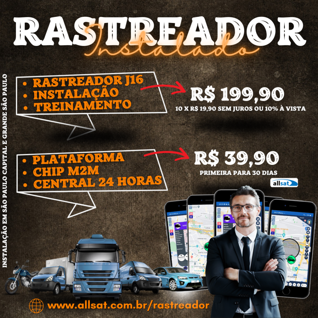 Com o sistema Allsat Master você terá o controle na palma da sua mão! Rastreamento em tempo real, cercas virtuais, alertas de movimentação, alertas de velocidade e muito mais!